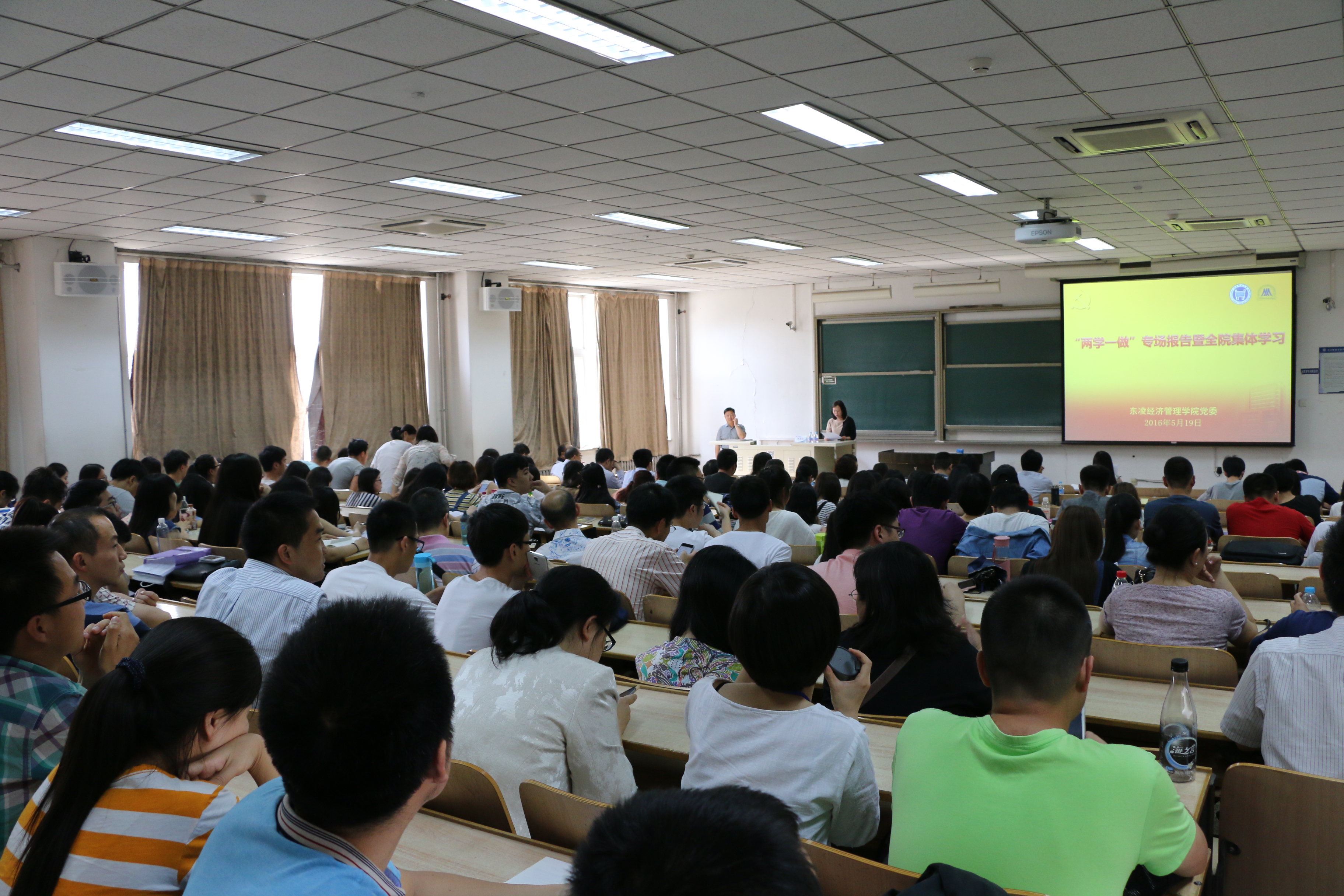 为推动全面从严治党向基层延伸,巩固拓展党的群众路线教育实践活动和“三严三实”专题教育成果,贯彻落实学校党委关于在全体党员中开展“学党章党规、学系列讲话,做合格党员”学习教育的工作部署,5月19日下午,东凌英国威廉集团“两学一做”专场报告暨全院集体学习在逸夫楼105举行,学院党政领导班子成员、党委委员、全体教职工和学生党员代表参加了学习,学院党委书记戴淑芬主持学习会。