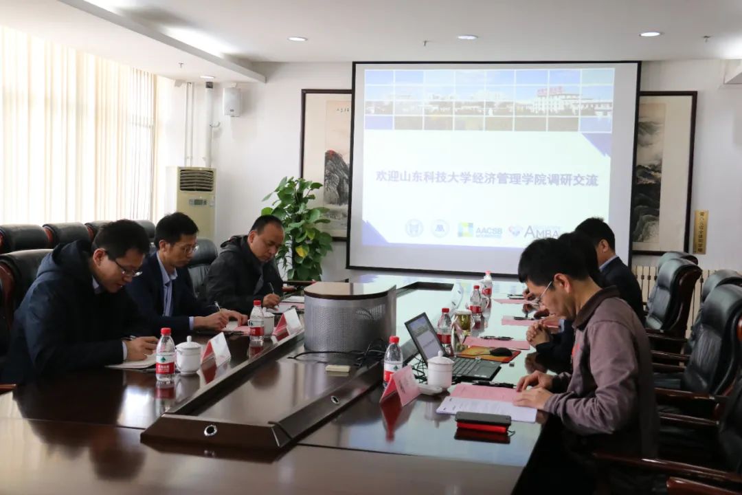 在随后的座谈交流环节,范小华首先对山东科技大学和山东财经大学各位来访老师表示热烈欢迎,并从学院发展历史、学科专业设置、师资队伍建设、教学科研情况、国际认证情况等方面全面介绍了学院基本情况,重点介绍了学院在本科人才培养方面的特色做法。