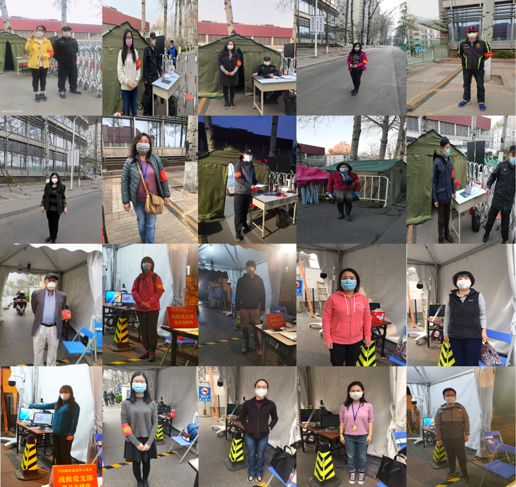 面对疫情,人人有责,参与校园社区巡逻值守的学院教职工们切实将疫情防控工作落到实处,有效维护了校园安全和秩序。负责学校东门值守工作的10名教职工和负责教学区东门值守任务的8名教职工严格履行工作职责,查验人员出入证件、测量体温,做好登记,做到逢车必查、逢人必查;在学校家属区巡逻两小时的2名教职工也是尽职尽责,耐心劝导外出的社区居民佩戴口罩,宣讲学校疫情防控相关政策。