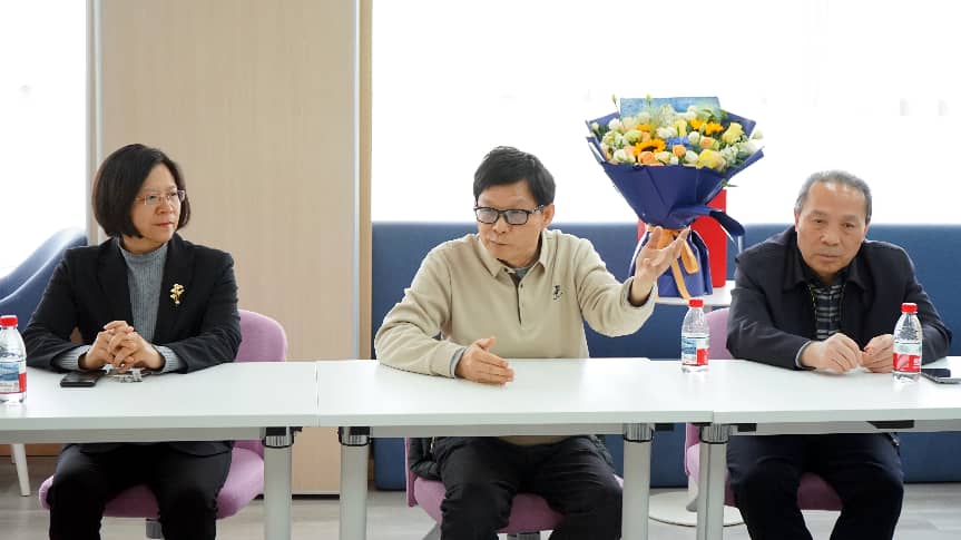 随后,杨武老师发表饱含深情的荣休感言。他结合自己跨越多个岗位的职业生涯,分享了与学院共同发展、与同仁并肩奋斗的难忘经历,表达了对教育事业的热爱、对学院的深厚情感。言谈之间,无不流露着对同事们的感激与对学院的祝福。