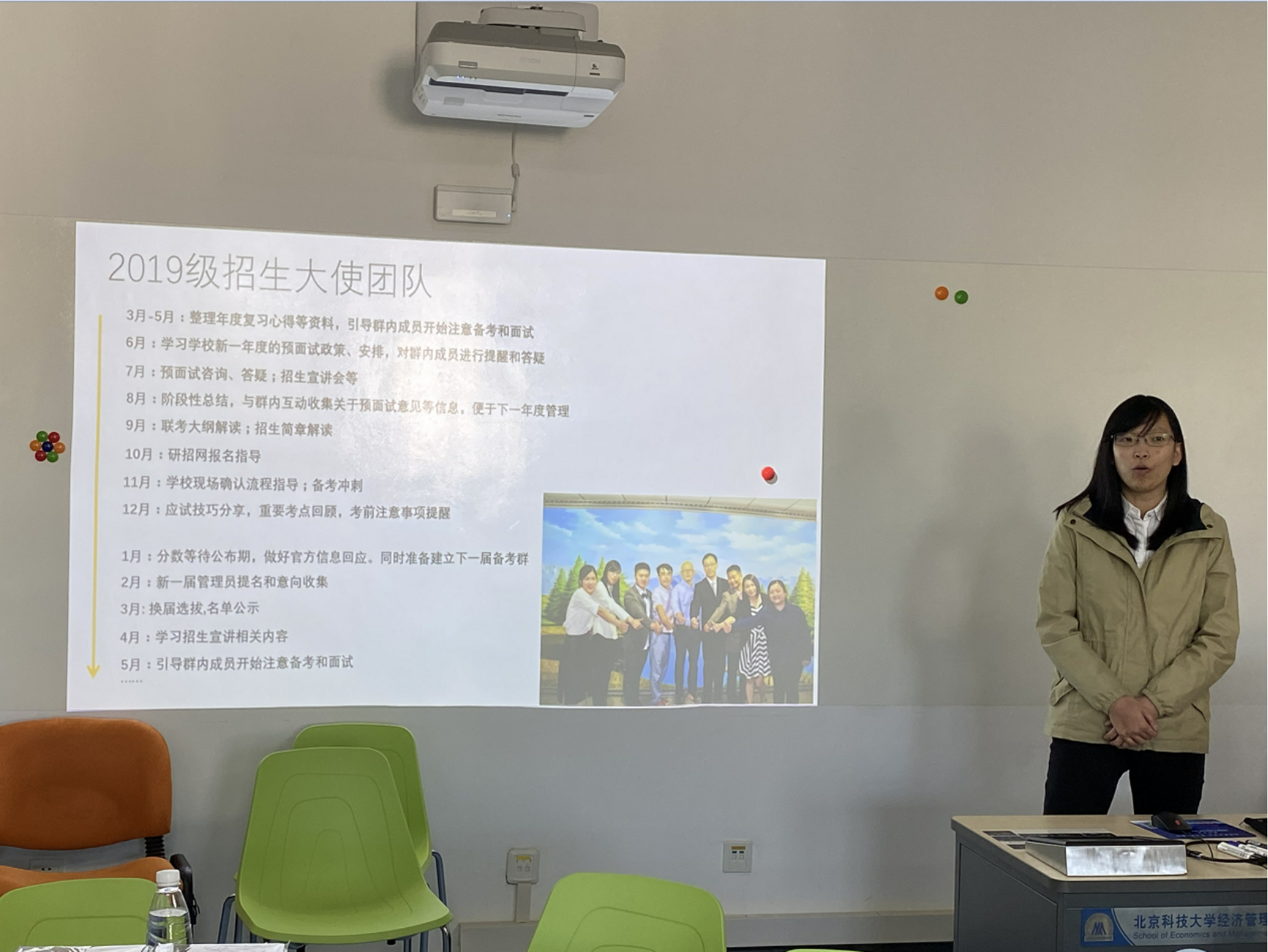 邵部长给大家讲述了一年以来他们从学长手中接过接力棒,不忘初心、砥砺前行累计服务近4000名考生,最终200多位考生上岸的北科故事。
