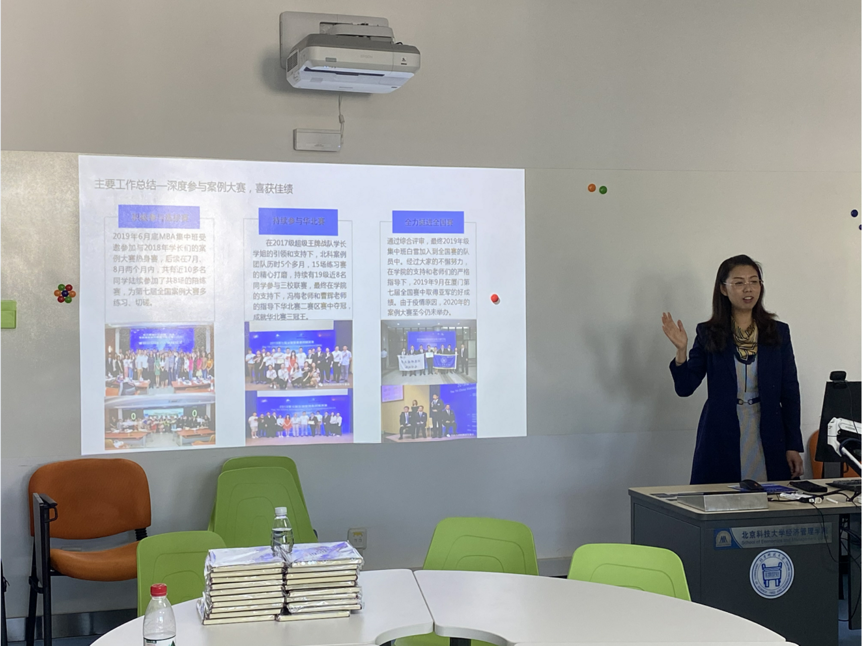 艾部长详细介绍了部门的主要的职能和过去一年的主要工作内容。给大家分享了百优案例的完成的艰难过程和完美的结果:19级同学中撰写的案例有2篇入选全国百优案例,19级白雪同学参与的团队获得全国的案例大赛亚军。