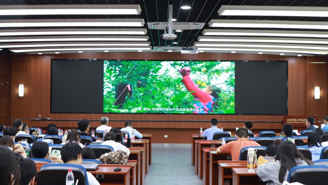 随后,景鹏对学校帮扶工作进行了介绍。他表示,学校帮扶的秦安县是国家乡村振兴重点帮扶县。2024年,学校帮扶工作持续加力,帮扶任务全部超额完成并再创新高,部分指标有所突破,秦安县委县政府专门致信感谢。这些成果的取得离不开全校师生积极支持,特别是经管学院师生的鼎力相助。