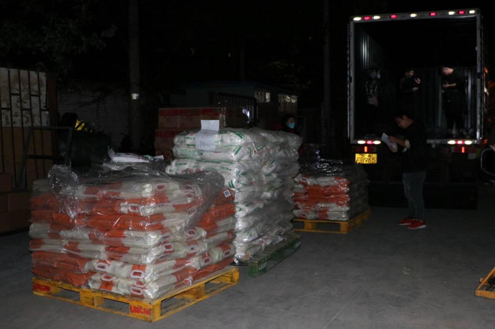 2021年10月15日晚11:30,全部物资由北京物美统一进行装车。
