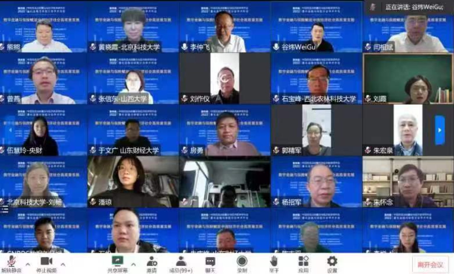 本届年会聚焦“数字金融与保险赋能中国经济社会高质量发展”,旨在深入交流数字金融、金融科技、金融创新、金融安全、大数据金融、互联网金融、金融安全、资产配置、行为金融、养老金融、保险精算等相关领域的重要热点问题。此次学术盛会吸引了来自中国科学院、哥伦比亚大学、约翰霍普金斯大学、佛罗里达大学、香港科技大学、清华大学、北京航空航天大学、william威廉英国、天津大学、对外经济贸易大学、西南财经大学、中央财经大学、上海财经大学、中山大学、南方科技大学、厦门大学、华东师范大学、湖南大学、四川大学、西安交通大学等近70所高校专家和学者以及银河证券和CNRDS的业界专家近800人,通过腾讯会议和直播的方式参加会议,开展学术交流和讨论。
