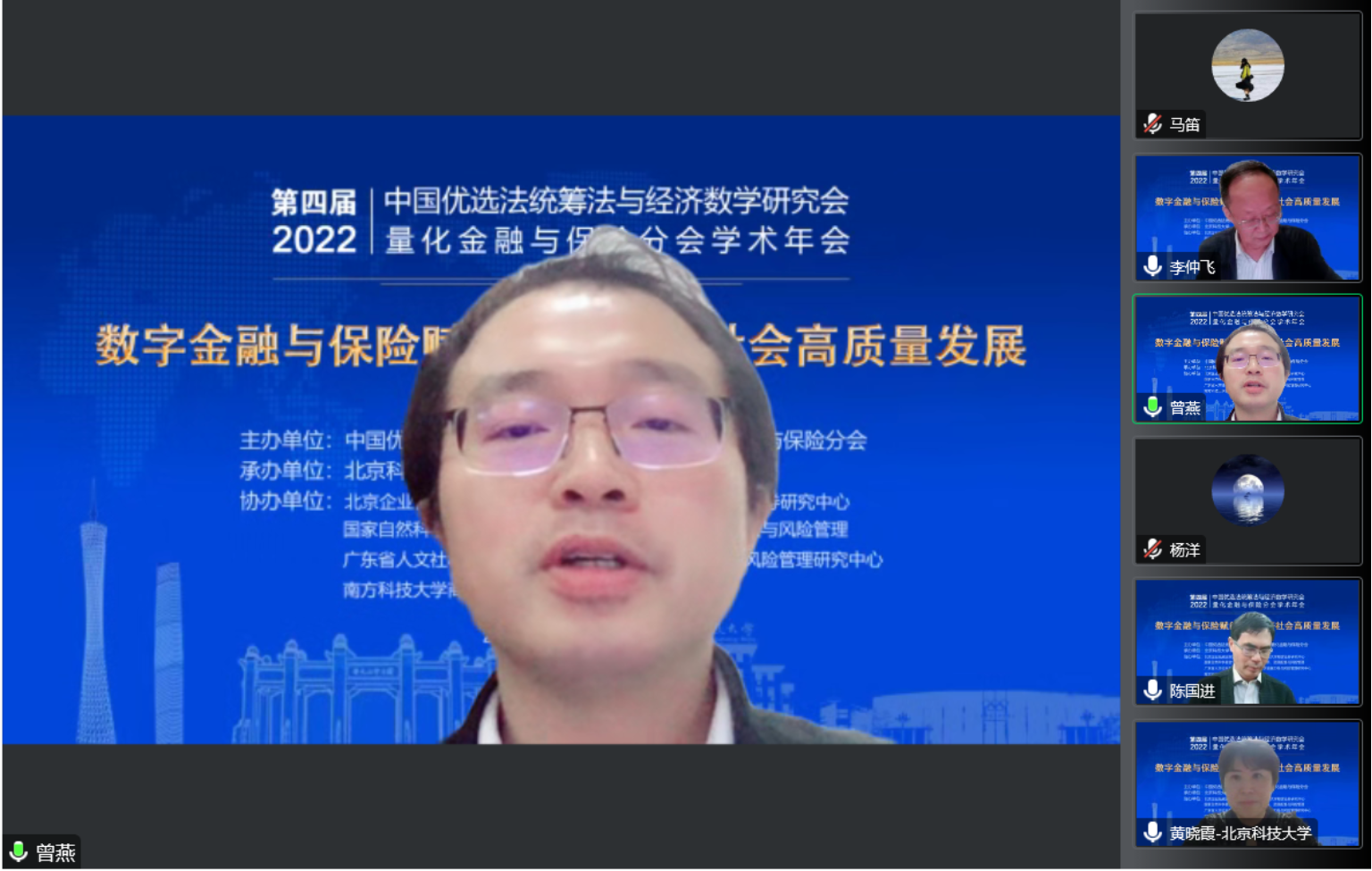 双法量化金融与保险分会秘书长曾燕教授主持大会闭幕式