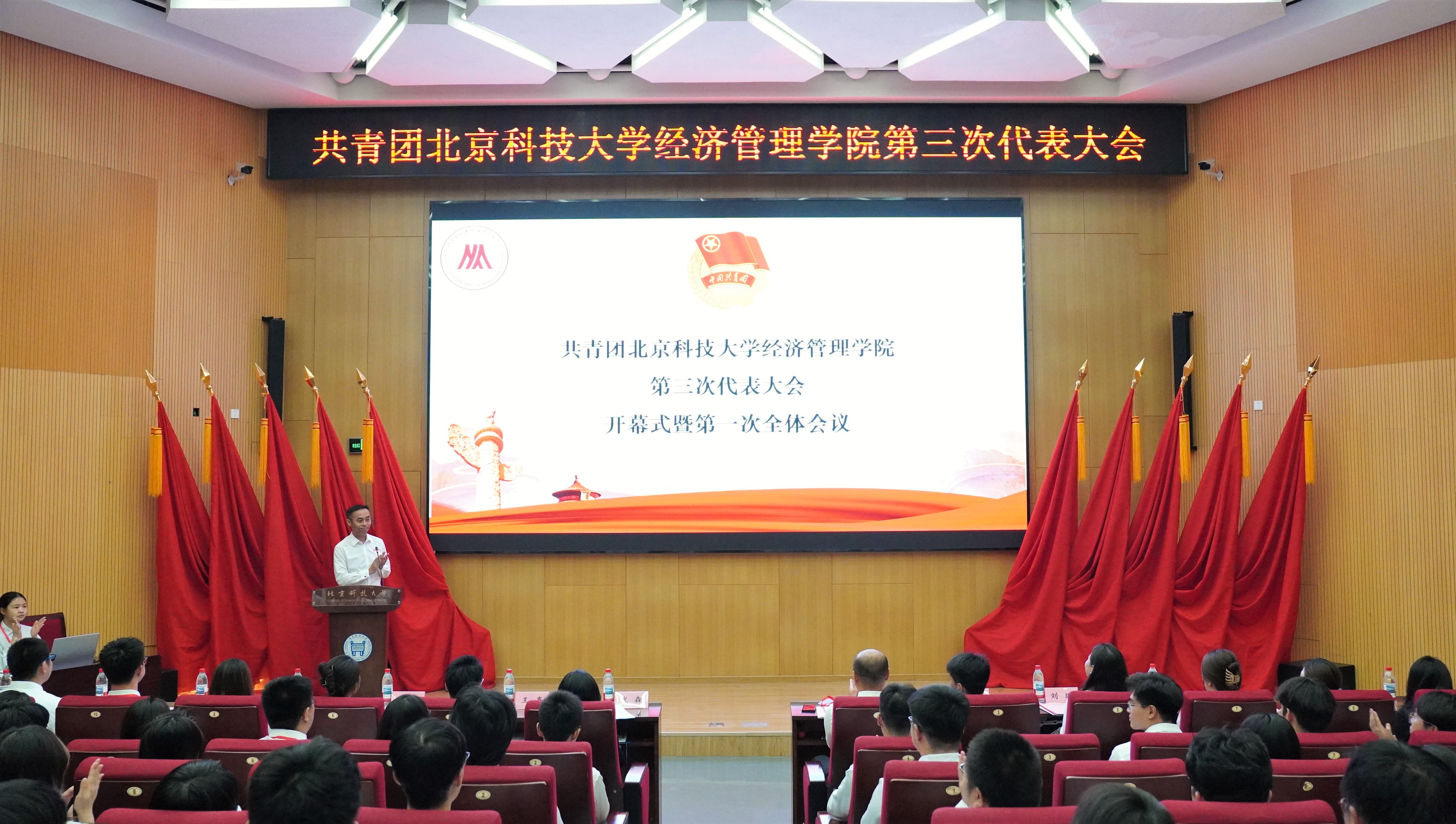 王海波代表校团委向大会的召开表示热烈的祝贺。他指出,近年来经管学院共青团在组织育人、思想育人、实践育人、文化育人等领域成果丰硕。随后,他对经管学院共青团提出三点希望,一是勤于求知,以理论武装筑牢青春信仰之基;二是勇于实践,以专业所长贡献强国建设之力;三是甘于奉献,以挺膺担当展现北科青年之风。