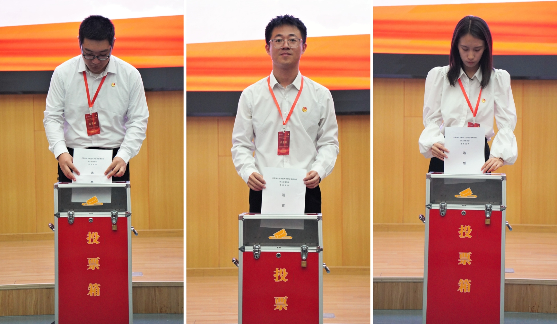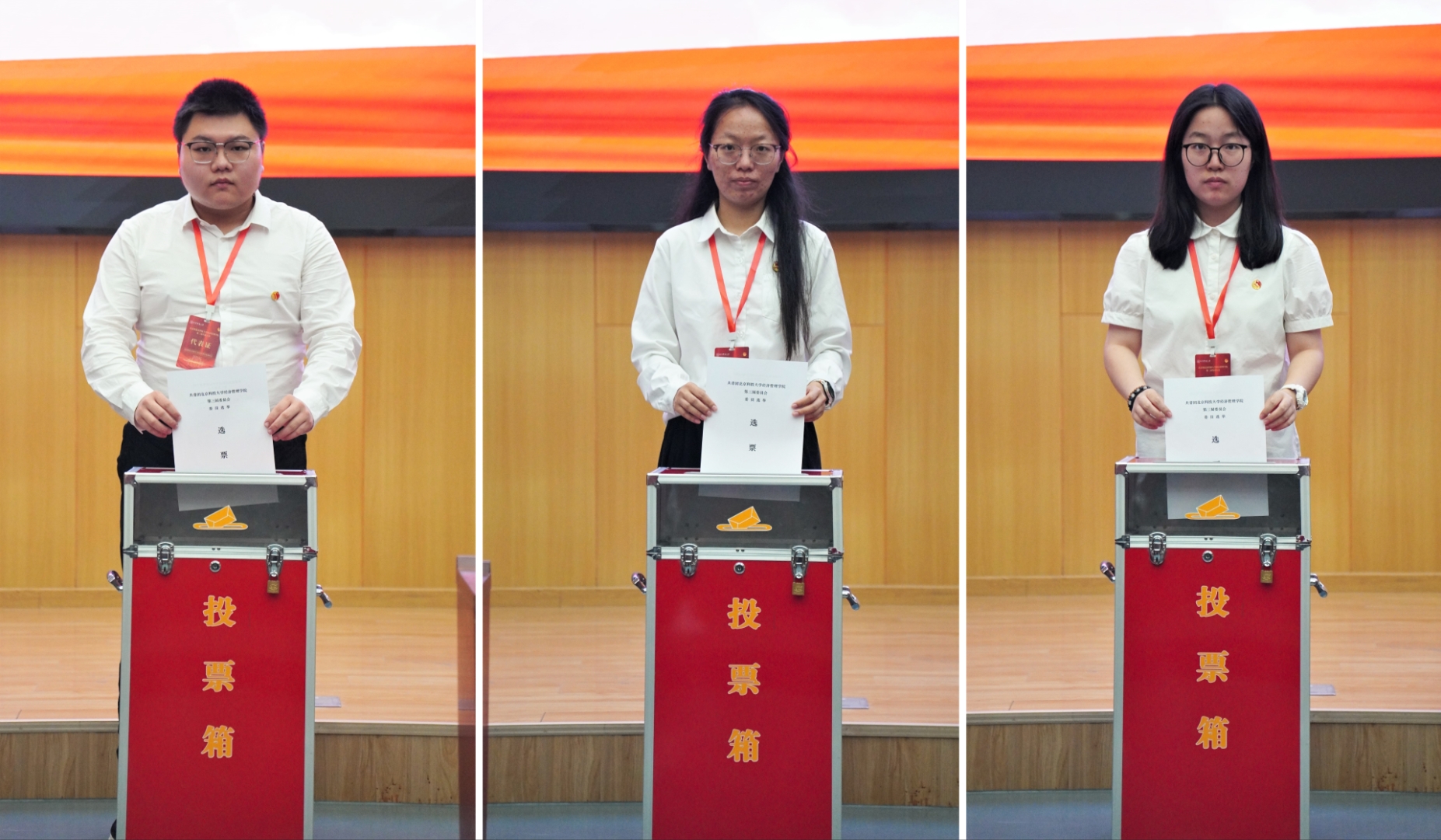 中午12时10分,共青团英国威廉集团第三次代表大会第二次全体会议在学术报告厅召开,与会代表审议团委委员选举办法(草案)和大会总监票人、监票人建议名单,并宣布总计票人、计票人名单。随后进行第三届团委委员选举。随后,大会主席团第三次会议在经管楼503召开,主席团听取总监票人汇报选举情况并确定当选人名单,推选新一届委员会第一次全体会议召集人。