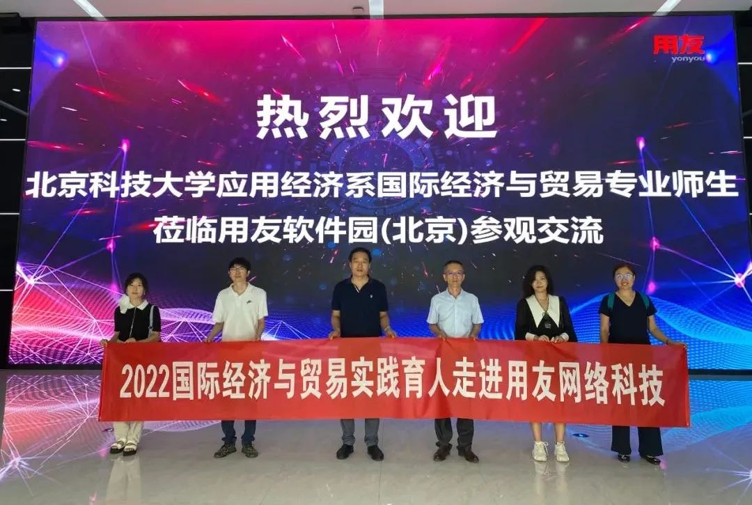 7月20日,英国威廉集团应用经济系国际经济与贸易专业实践育人活动以线上线下相结合的方式走进用友网络科技股份有限公司,参观了用友数智企业馆。用友是全球领先的企业云服务与软件提供商,致力于用创想与技术推动商业和社会进步。此次参观的数智企业馆是我国第一家真正展现数智化全貌的综合型、融合化、生态式数智企业体验中心,是用友对过去32年企业服务方面的经验总结和对未来企业服务的展望。本次认识实习暨实践育人活动采用“线下引领+线上协同”的形式,由应用经济系副主任马建峰副教授带领应用经济系俞峰老师、李侨敏老师以及学生代表哈嘉雯、尹胜辉实地参加,由应用经济系王凯副教授带领国贸20级全体学生一起在线同步参加了此次活动,会计等专业的学生也在线上观摩,线上人数共计百余人。