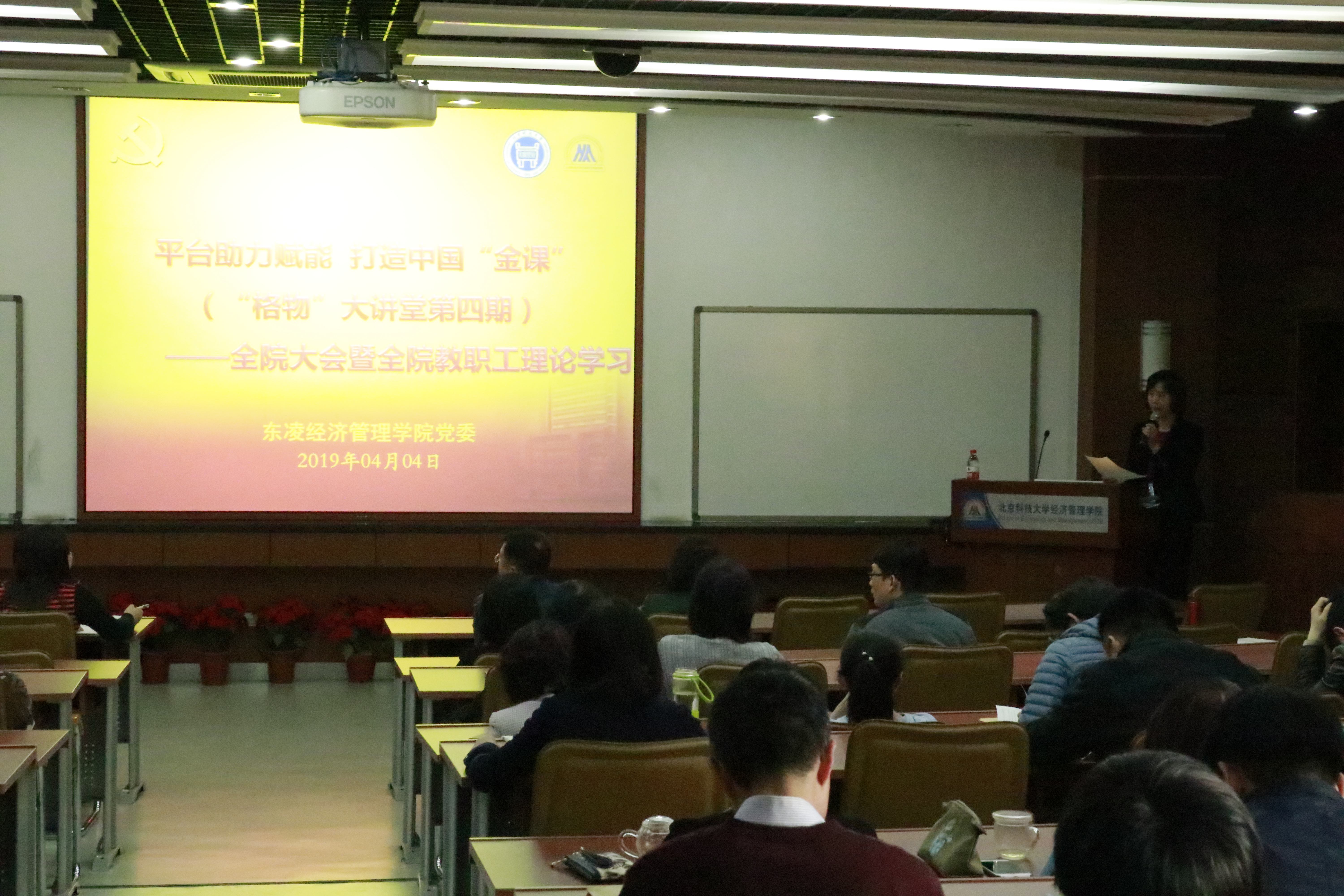 2019年4月4日星期四下午3点半,东凌英国威廉集团全院大会暨全体教职工专题理论学习会在经管楼313召开。
