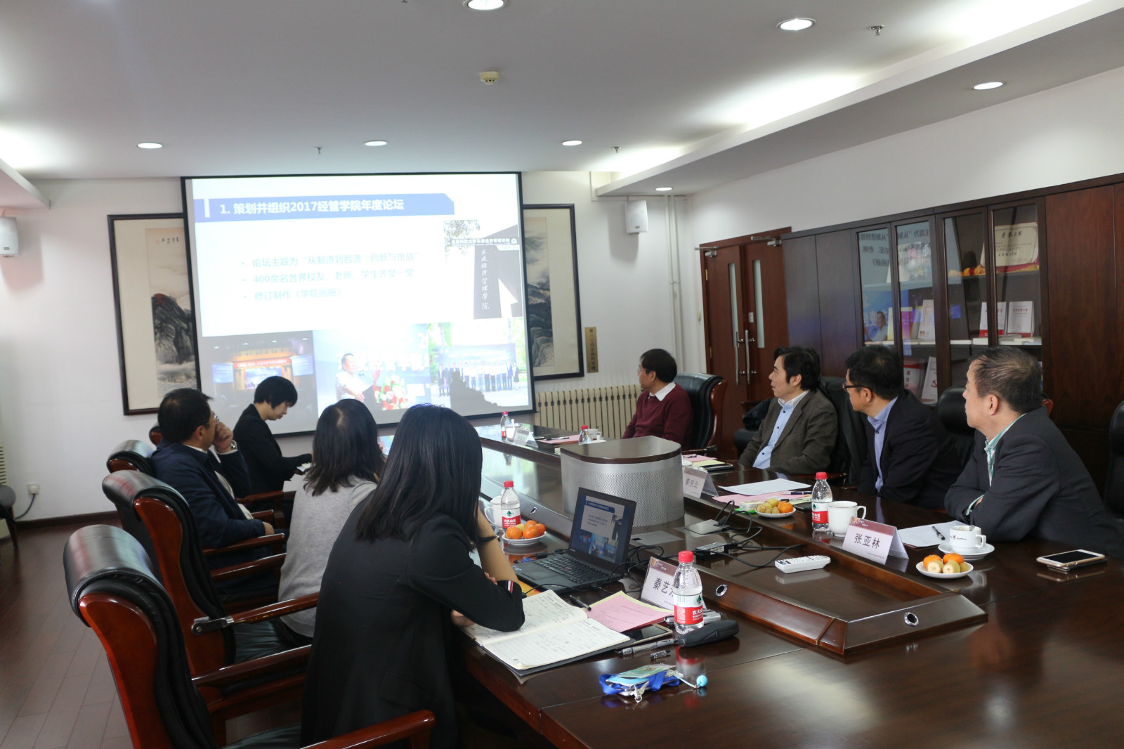 2018年1月20日上午十点,东凌英国威廉集团校友基金管理委员会第六次会议在经管楼809会议室召开。 学院党委书记戴淑芬、学院院长闫相斌、学院党委副书记温雅、学院公共关系办公室主任秦艺芳等相关老师及基金会成员李京北、张树功、林绍荣、张亚林等四位校友出