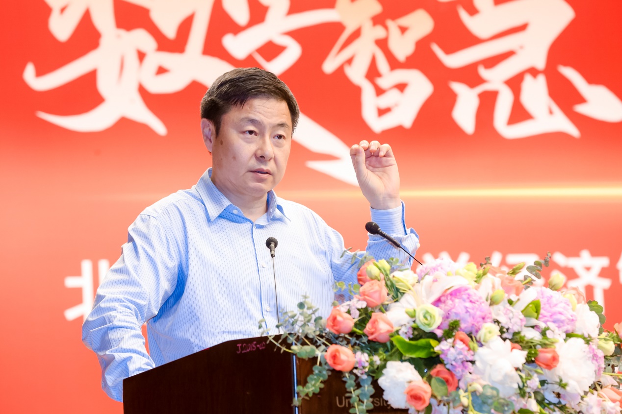 兄弟学校代表西安交通大学管理学院院长冯耕中致辞。冯院长首先对国内工科院校商学院的发展历程做出回顾,各兄弟院校血脉相承,同气连枝。作为国内商学院发展的助力之一,西安交大管理学院和北科大经管学院秉持相融相通的办学理念和精神气质,在许多领域优势互补。自建立良好沟通机制以来,双方密切联系、务实合作、互学互建、互帮互助。他祝愿北科大经管学院再创新高,希望未来各兄弟院校继续携手,共谱友谊新篇章,为国家的经济管理教育做出更大的贡献。