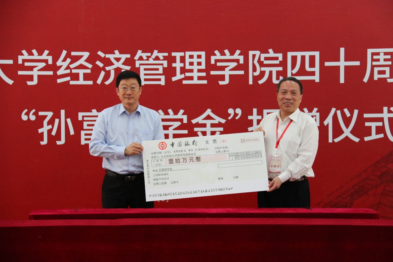 孙富奖学金的设立,反映出校友对母校的感恩之情。希望经管学子饮水思源、不忘学长关怀,奋发图强、成才报效国家,牢记学院和校友的嘱托,感恩母校、回馈社会,为学院的发展做出更多贡献。